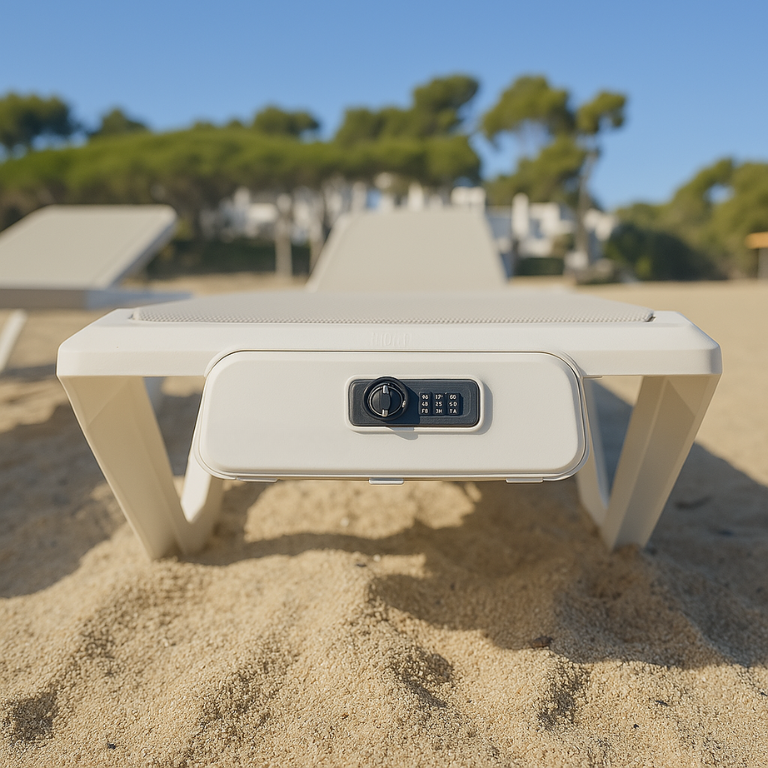 Enhance your sunbathing experience with Weguard, the innovative sun lounger safe. Say goodbye to worrying about the safety of your valuables while you're at the pool or beach. Our sun lounger with locker guarantees peace of mind by providing a secure storage solution within easy reach.