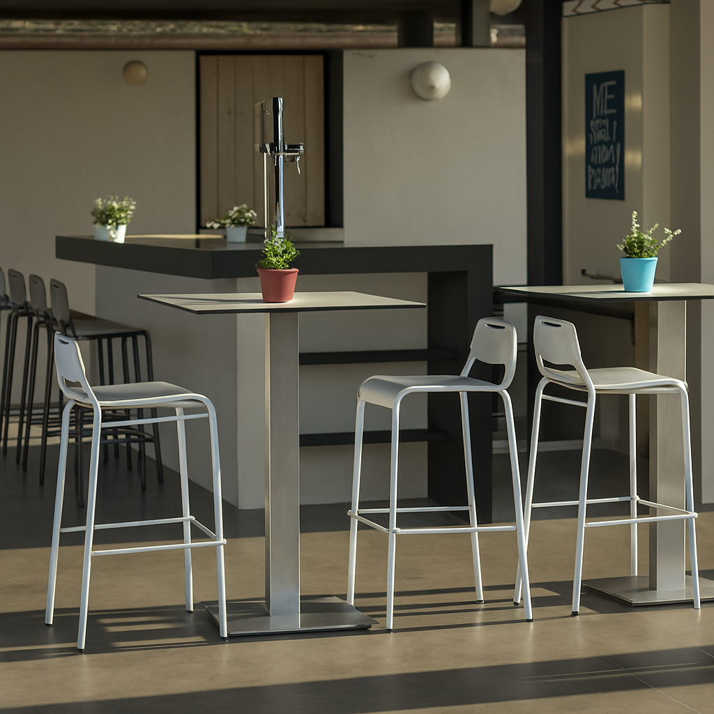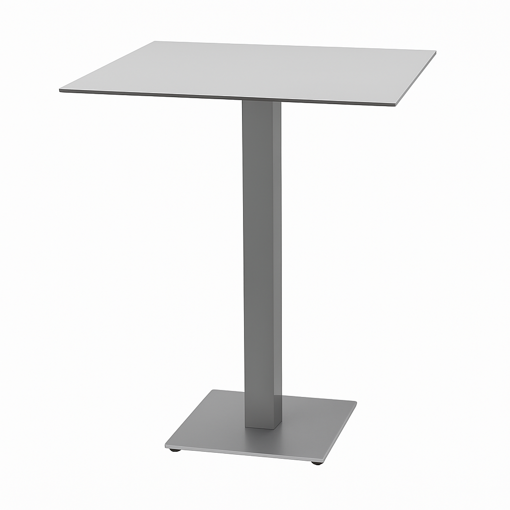 The high table elevates the elegance and durability of the original model, adapting easily to spaces that require a more dynamic format. Its increased height makes it the perfect partner for stools like our Etna stool, providing versatility without losing presence. Constructed from hardened aluminum with stainless steel hardware, it is designed to withstand the test of time and intensive outdoor use. The solid and durable HPL tabletop offers a surface that withstands moisture, impacts, and high temperatures without warping. The brushed aluminum finish adds a contemporary and sophisticated touch. , the high table is the ideal choice for terraces, bars, and meeting areas where practical design takes center stage.